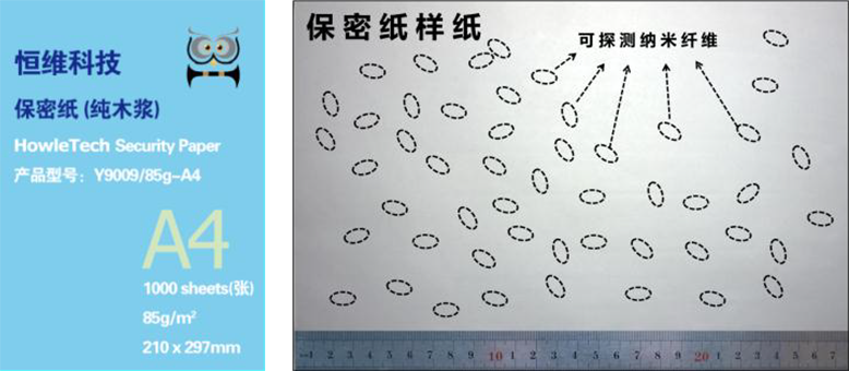 使用恒维保密纸打印的涉密文件,可有效防止信息泄密。当人员携带涉密文件通过多功能检测通道时,纳米材料制成的涉密标识会触发声光报警。 恒维保密纸的使用与普通打印纸无区别,可双面打印,标准规格为 A3,A4 两种,也可根据用户需求定制大型纸张。