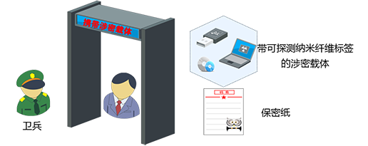 将可探测纳米纤维植入到涉密纸张、电子标签或其它涉密载体中利用新材料的特殊物理属性,可以有效解决涉密载体,涉密资产管控难的问题,弥补了电子标签在涉密领域应用的技术缺陷。